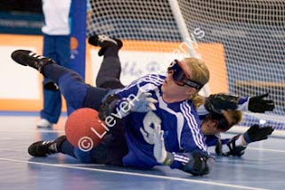 aqui esta mostrando este jogo de futebol com a mão esta pessoas que joga ela são cegas